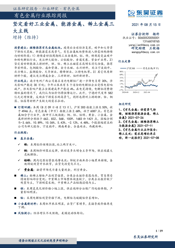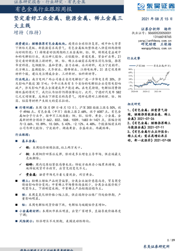 【东吴证券】【20210815】20210815-东吴证券-有色金属行业跟踪周报:坚定看好工业金属、能源金属、稀土金属三大主线-19页