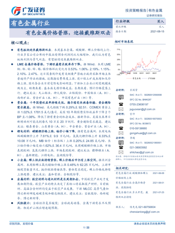 【广发证券】【20210815】20210815-广发证券-有色金属行业投资策略报告:有色金属价格普涨,迎接戴维斯双击-22页