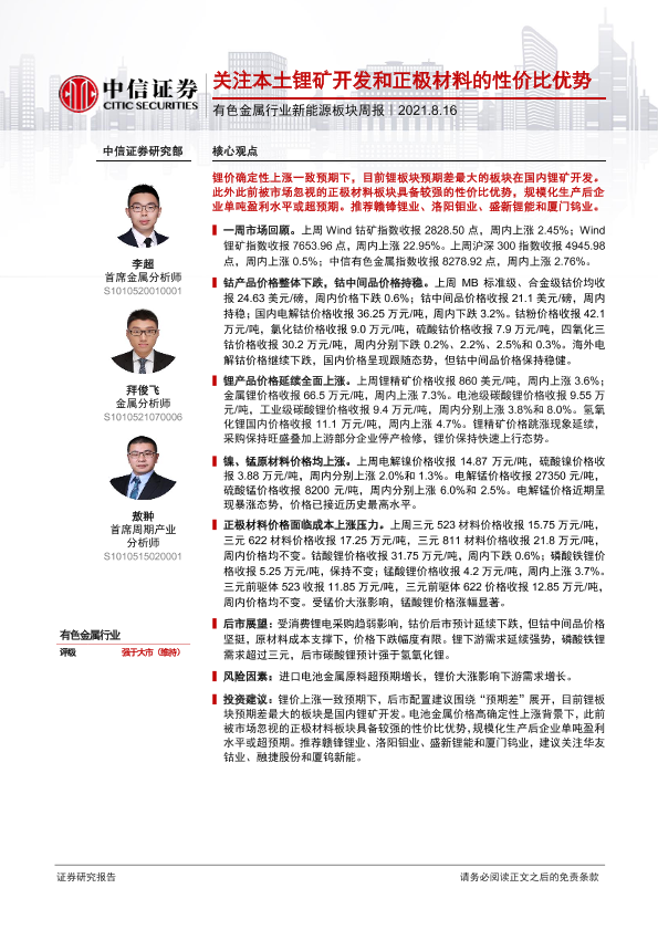 【中信证券】【20210816】20210816-中信证券-有色金属行业新能源板块周报:关注本土锂矿开发和正极材料的性价比优势-15页