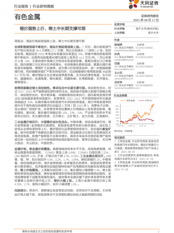 【天风证券】【20210817】20210817-天风证券-有色金属行业研究周报:锂价强势上行,稀土中长期支撑可期-11页