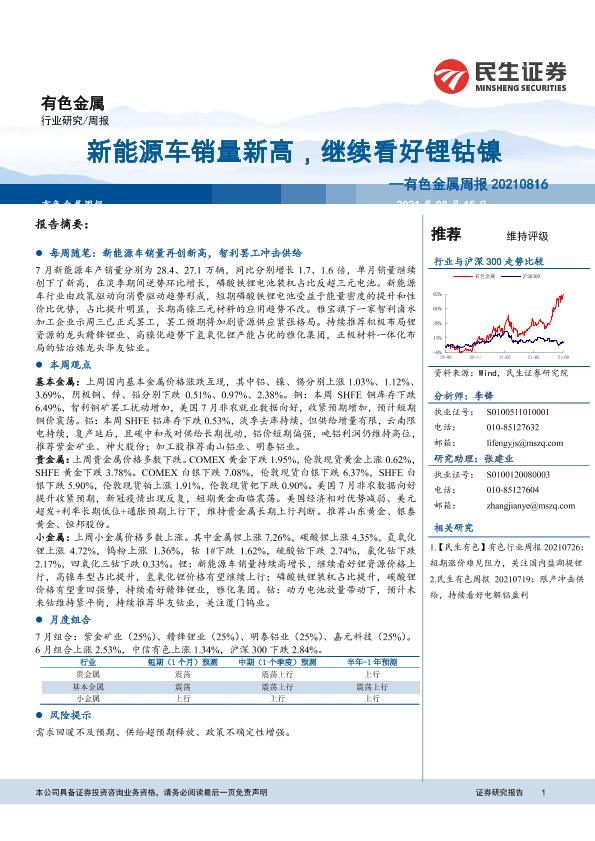 【民生证券】【20210816】20210816-民生证券-有色金属周报:新能源车销量新高,继续看好锂钴镍-20页