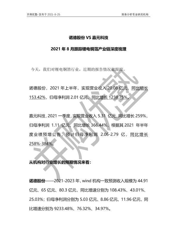 【并购优塾】【20210825】诺德股份VS嘉元科技:2021年8月跟踪锂电铜箔产业链深度梳理-28页