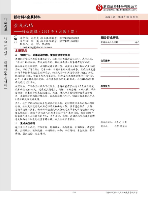 【浙商证券】【20210829】20210829-浙商证券-新材料&金属材料行业周报(2021年8月第4期):金九来临-16页