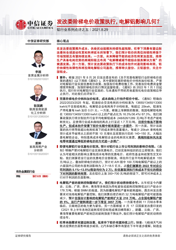【中信证券】【20210829】铝行业系列点评之五:发改委阶梯电价政策执行,电解铝影响几何?-4页
