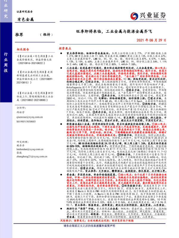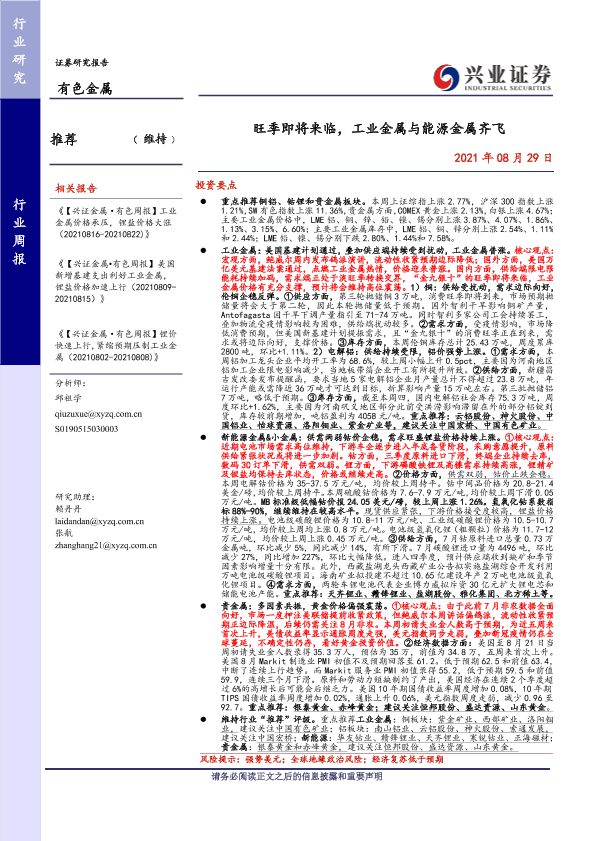 【兴业证券】【20210829】20210829-兴业证券-有色金属行业周报:旺季即将来临,工业金属与能源金属齐飞-22页