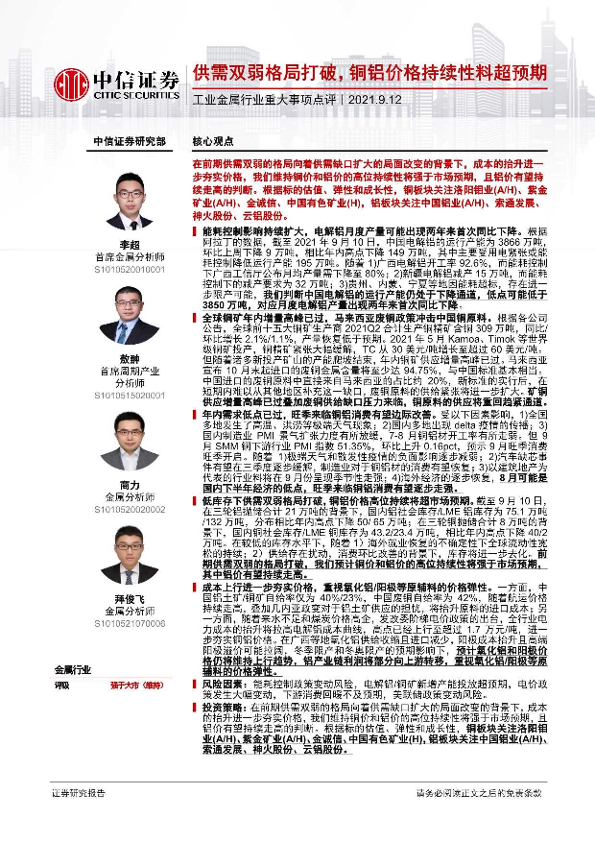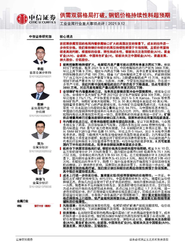 【中信证券】【20210912】工业金属行业重大事项点评:供需双弱格局打破,铜铝价格持续性料超预期-3页