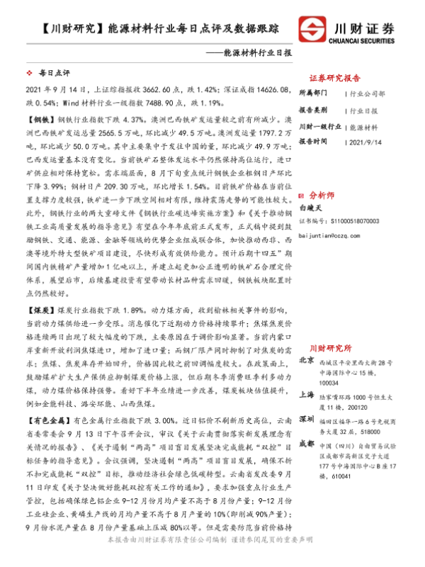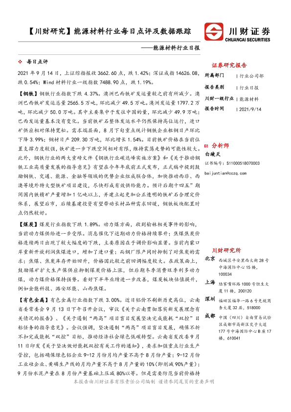 【川财证券】【20210914】20210914-川财证券-能源材料行业日报:【川财研究】能源材料行业每日点评及数据跟踪-5页