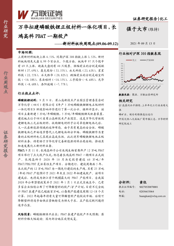 【万联证券】【20210913】万华拟建磷酸铁锂正极材料一体化项目,长鸿高科PBAT一期投产-10页