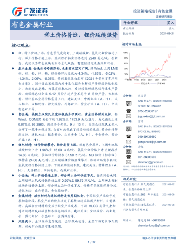 【广发证券】【20210921】20210921-广发证券-有色金属行业投资策略报告:稀土价格普涨,锂价延续强势-22页