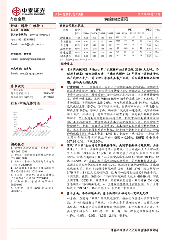 【中泰证券】【20210921】20210921-中泰证券-有色金属行业周报:供给继续受限-48页
