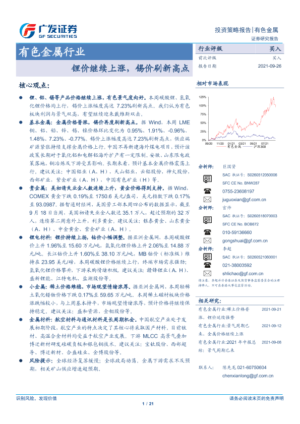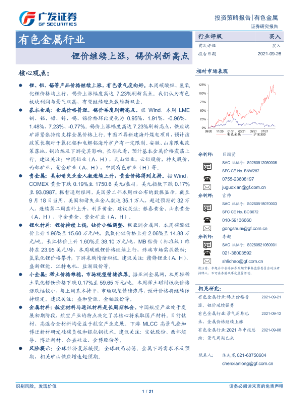 【广发证券】【20210926】20210926-广发证券-有色金属行业:锂价继续上涨,锡价刷新高点-21页