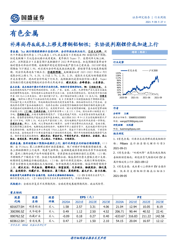 【国盛证券】【20210927】20210927-国盛证券-有色金属行业周报:补库尚存&成本上移支撑铜铝韧性;长协谈判期锂价或加速上行-21页
