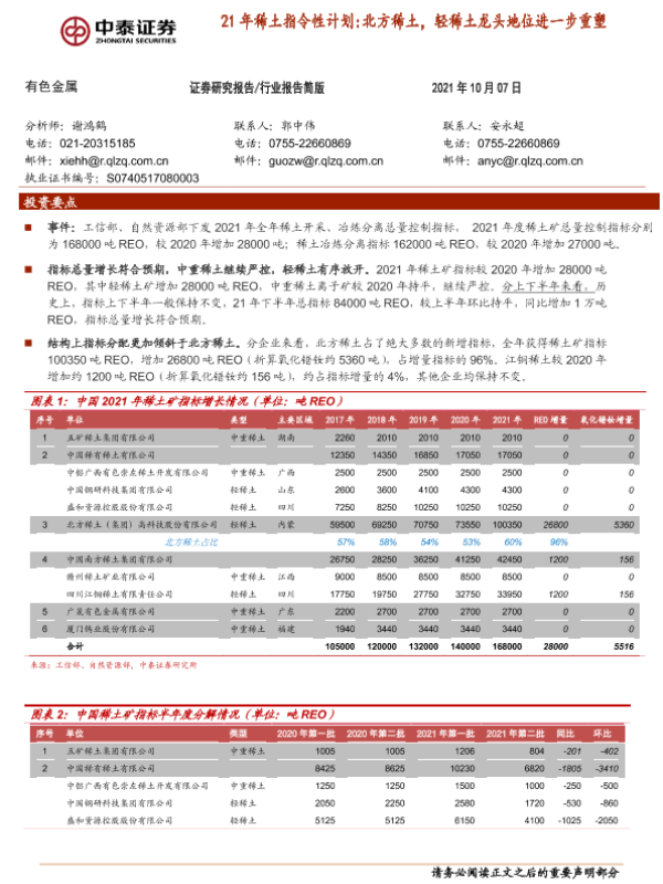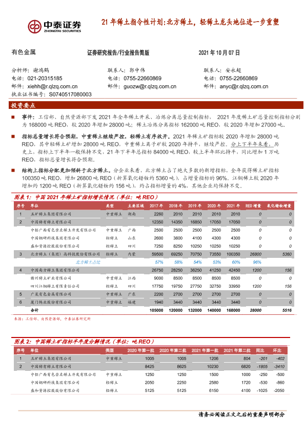 【中泰证券】【20211007】21年稀土指令性计划:北方稀土,轻稀土龙头地位进一步重塑-4页