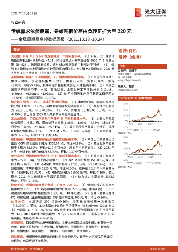 【光大证券】【20211023】钢铁行业金属周期品高频数据周报:传统需求依然疲弱,卷螺吨钢价差由负转正扩大至220元-24页