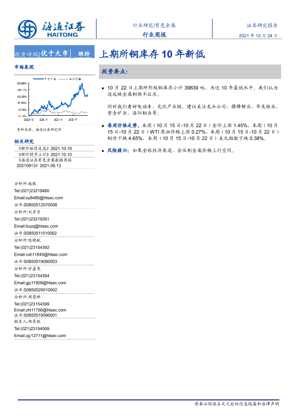 【海通证券】【20211024】20211024-海通证券-有色金属行业周报:上期所铜库存10年新低-5页