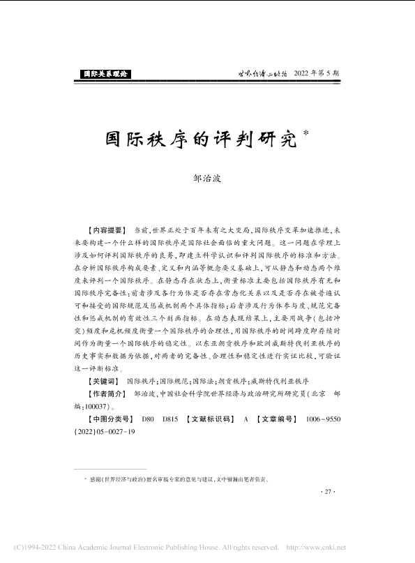 【中国社会科学院世界经济与政治研究所】【202205】国际秩序的评判研究-20页