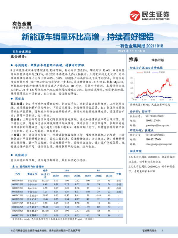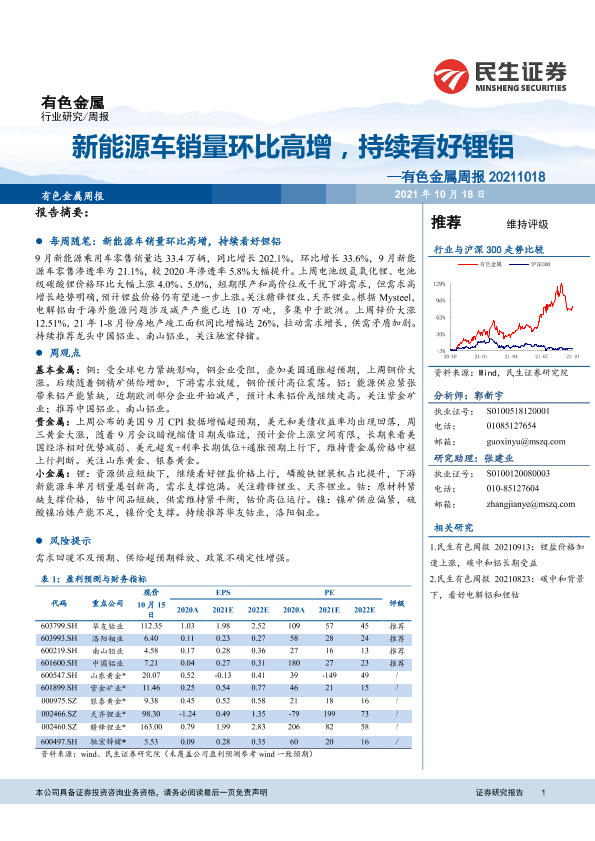 【民生证券】【20211018】20211018-民生证券-有色金属周报:新能源车销量环比高增,持续看好锂铝-17页