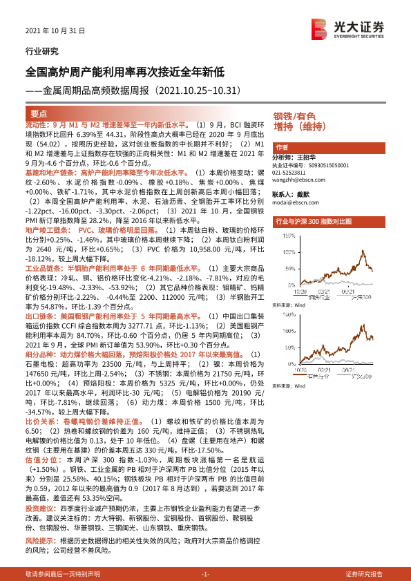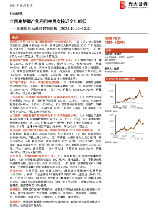 【光大证券】【20211031】金属周期品高频数据周报:全国高炉周产能利用率再次接近全年新低-24页