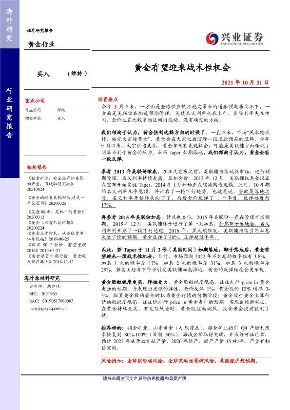 【兴业证券】【20211031】黄金行业:黄金有望迎来战术性机会-16页