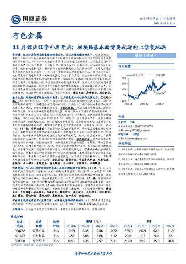 【国盛证券】【20211031】20211031-国盛证券-有色金属行业周报:11月锂盐旺季补库开启;板块&基本面背离或迎向上修复机遇-21页