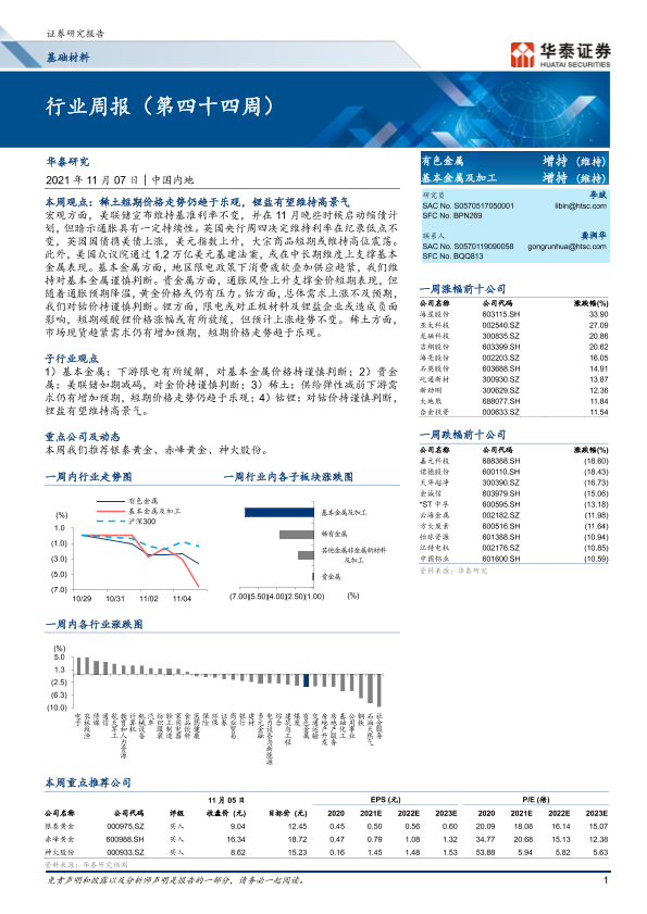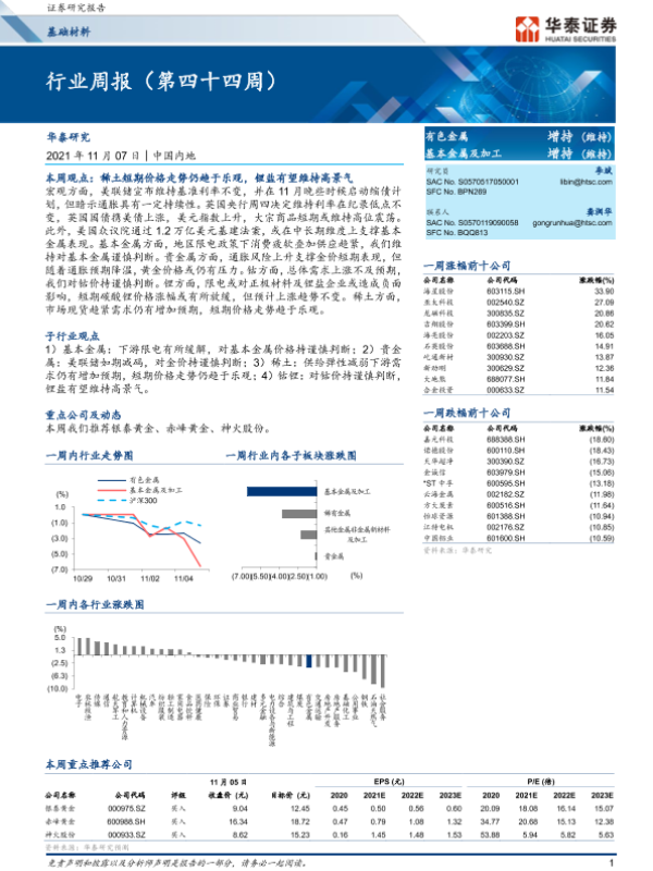 【华泰证券】【20211107】20211107-华泰证券-基础材料行业周报(第四十四周)-16页