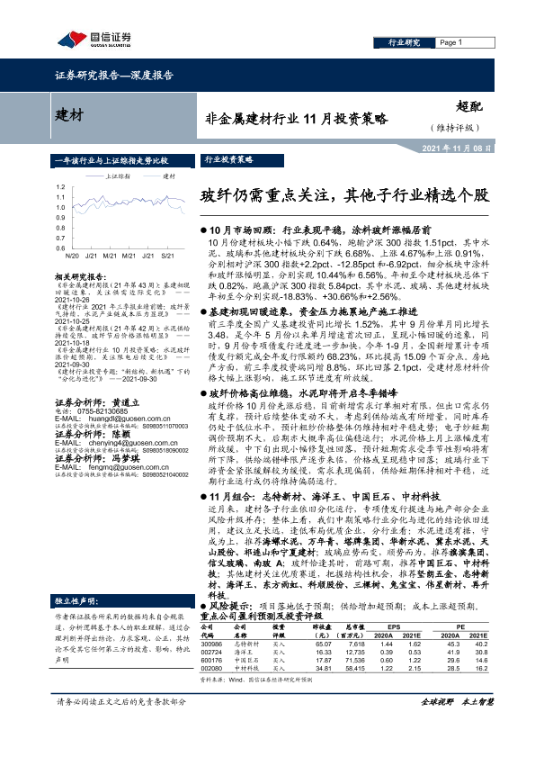 【国信证券】【20211108】非金属建材行业11月投资策略:玻纤仍需重点关注,其他子行业精选个股-25页