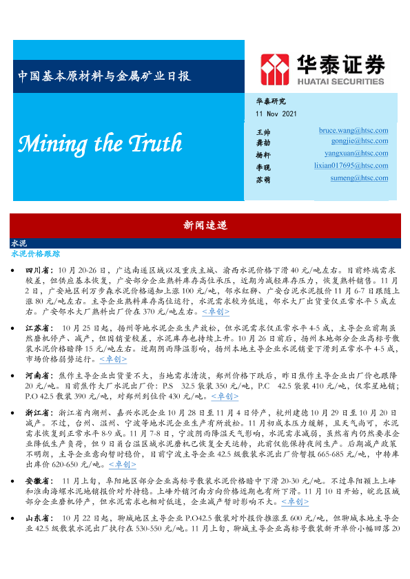 【华泰证券】【20211111】中国基本原材料与金属矿业日报-13页