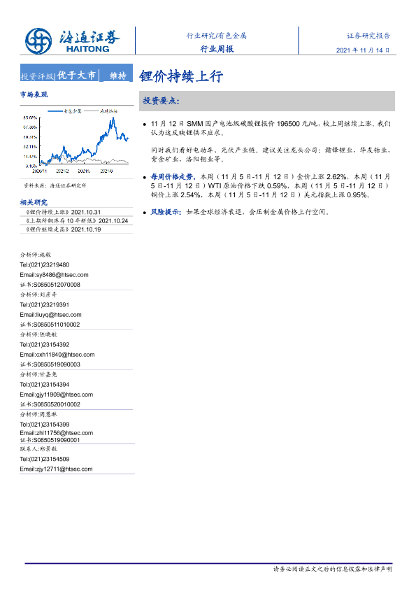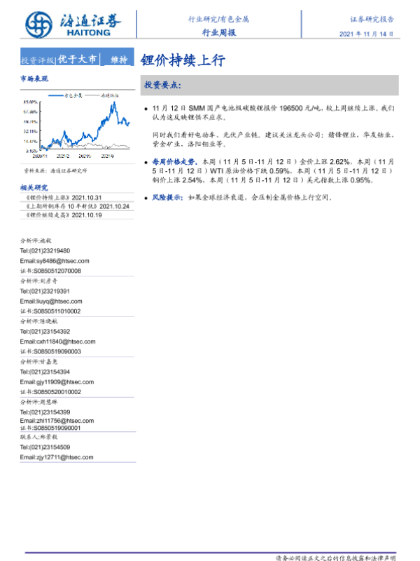 【海通证券】【20211114】20211114-海通证券-有色金属行业周报:锂价持续上行-4页