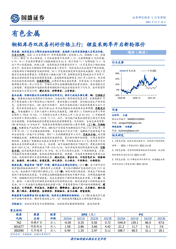 【国盛证券】【20211114】20211114-国盛证券-有色金属行业周报:铜铝库存双改善利好价格上行;锂盐采购季开启新轮涨价-21页
