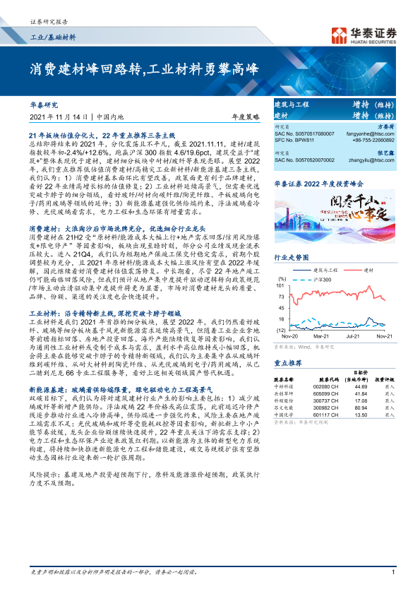 【华泰证券】【20211114】20211114-华泰证券-工业基础材料行业年度策略:消费建材峰回路转,工业材料勇攀高峰-44页