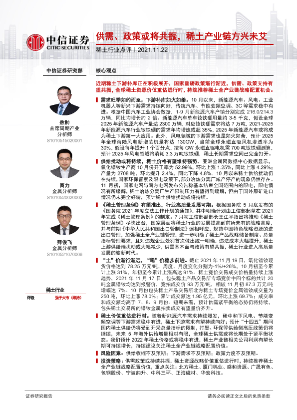 【中信证券】【20211122】稀土行业点评:供需、政策或将共振,稀土产业链方兴未艾-2页