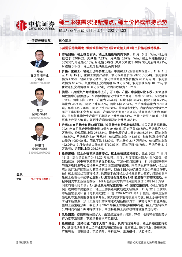 【中信证券】【20211123】稀土永磁需求迎新爆点,稀土价格或维持强势-38页