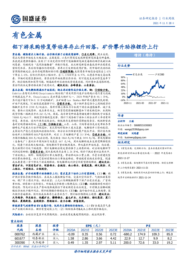 【国盛证券】【20211128】有色金属:铝下游采购修复带动库存止升回落,矿价攀升助推锂价上行-22页