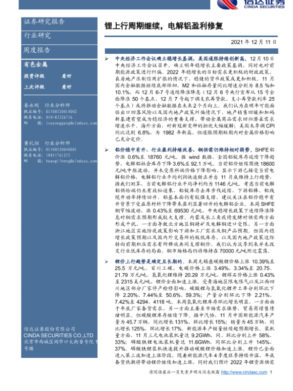 【信达证券】【20211211】20211211-信达证券-有色金属周度报告:锂上行周期继续,电解铝盈利修复-11页