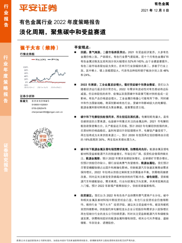 【平安证券】【20211208】有色金属行业2022年度策略报告:淡化周期,聚焦碳中和受益赛道-38页
