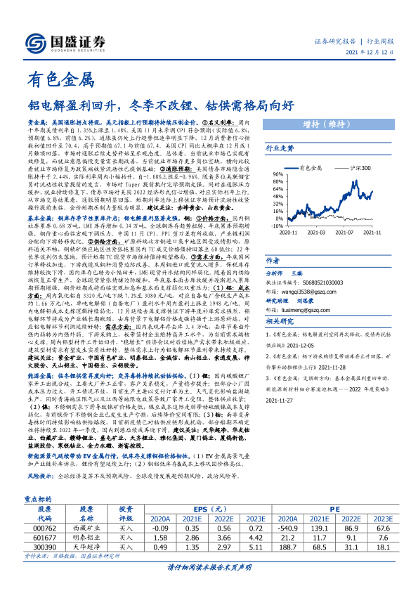 【国盛证券】【20211212】20211212-国盛证券-有色金属行业周报:铝电解盈利回升,冬季不改锂、钴供需格局向好-21页