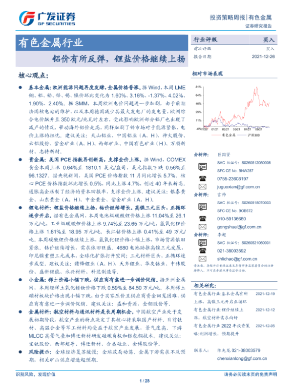 【广发证券】【20211226】20211226-广发证券-有色金属行业投资策略周报:铝价有所反弹,锂盐价格继续上扬-23页