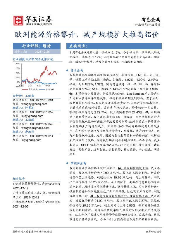 【华安证券】【20211226】20211226-华安证券-有色金属行业周报:欧洲能源价格攀升,减产规模扩大推高铝价-16页