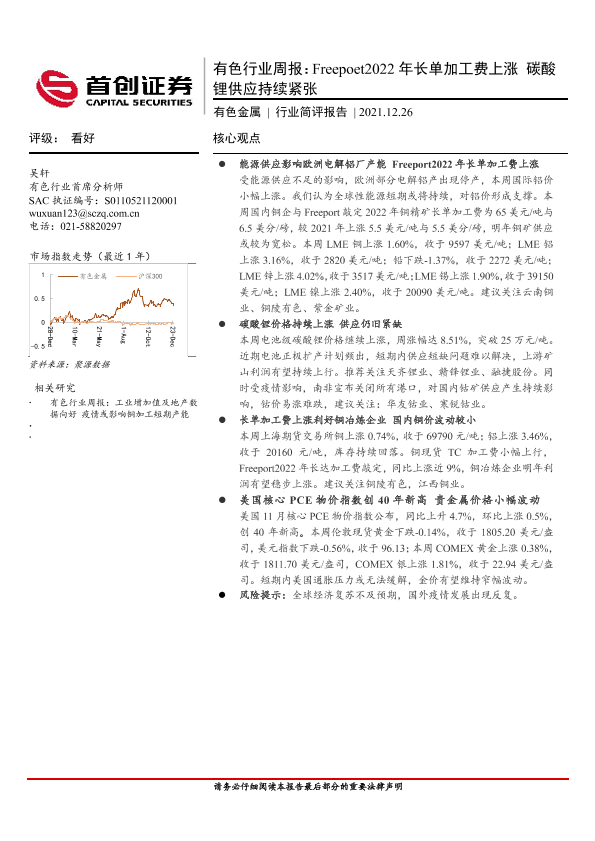 【首创证券】【20211226】20211226-首创证券-有色行业周报:Freepoet2022年长单加工费上涨 碳酸锂供应持续紧张-11页