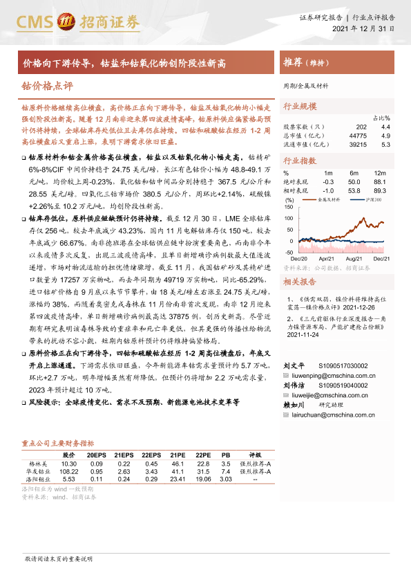 【海通证券】【20211231】钴价格点评:价格向下游传导,钴盐和钴氧化物创阶段性新高-4页