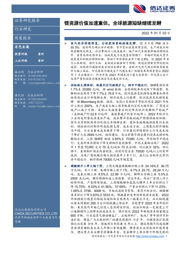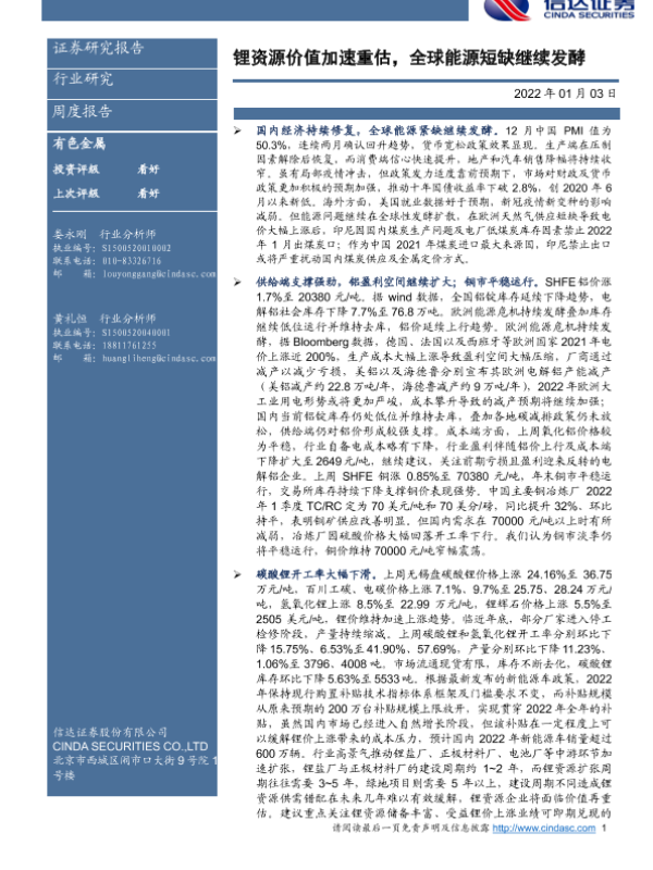 【信达证券】【20220103】20220103-信达证券-有色金属周度报告:锂资源价值加速重估,全球能源短缺继续发酵-11页