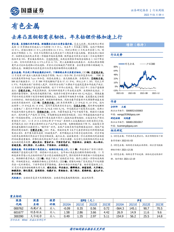 【国盛证券】【20220109】有色金属:去库凸显铜铝需求韧性,年末钴锂价格加速上行-20页