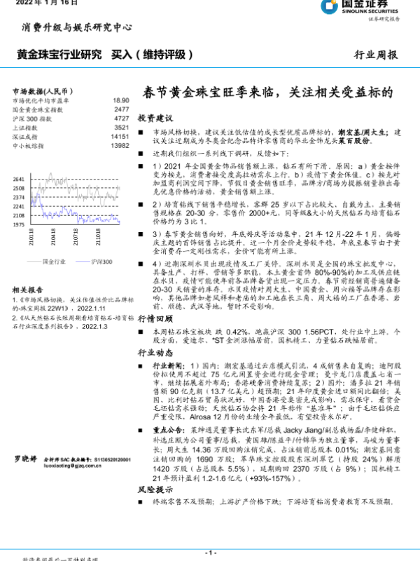 【国金证券】【20220116】20220116-国金证券-黄金珠宝行业研究:春节黄金珠宝旺季来临,关注相关受益标的-10页