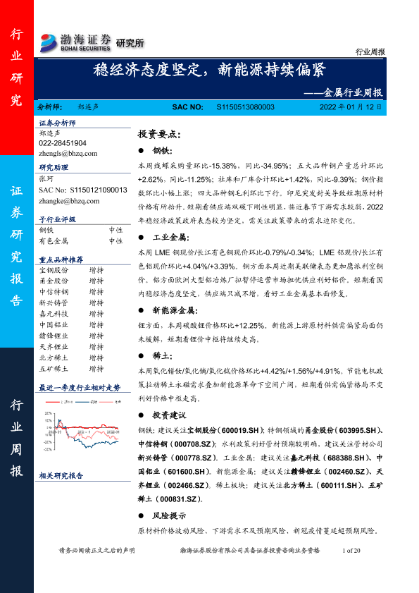 【渤海证券】【20220112】金属行业周报:稳经济态度坚定,新能源持续偏紧-20页