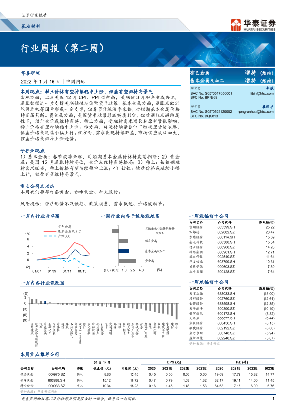 【华泰证券】【20220116】20220116-华泰证券-基础材料行业周报(第二周)-17页