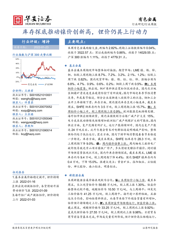 【华安证券】【20220123】20220123-华安证券-有色金属行业周报:库存探底推动镍价创新高,锂价仍具上行动力-16页