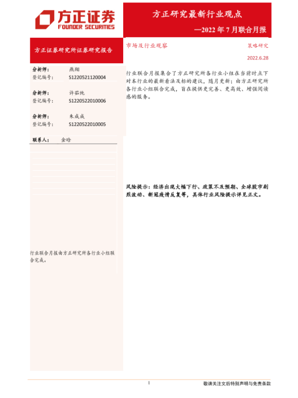 【方正证券】【20220628】2022年7月联合月报:方正研究最新行业观点-19页