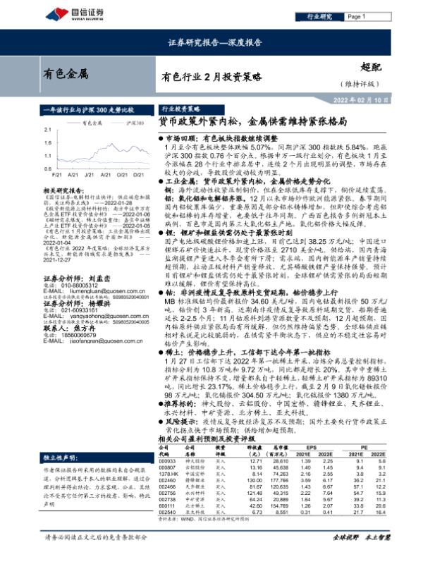 【国信证券】【20220210】20220210-国信证券-有色行业2月投资策略:货币政策外紧内松,金属供需维持紧张格局-28页
