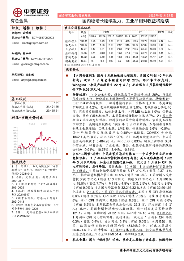 【中泰证券】【20220213】20220213-中泰证券-有色金属:国内稳增长继续发力,工业品相对收益将延续-42页