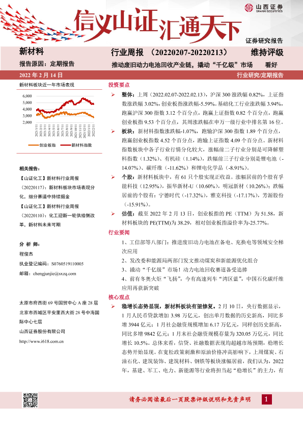 【山西证券】【20220214】20220214-山西证券-新材料行业周报:推动废旧动力电池回收产业链,撬动“千亿级”市场-13页